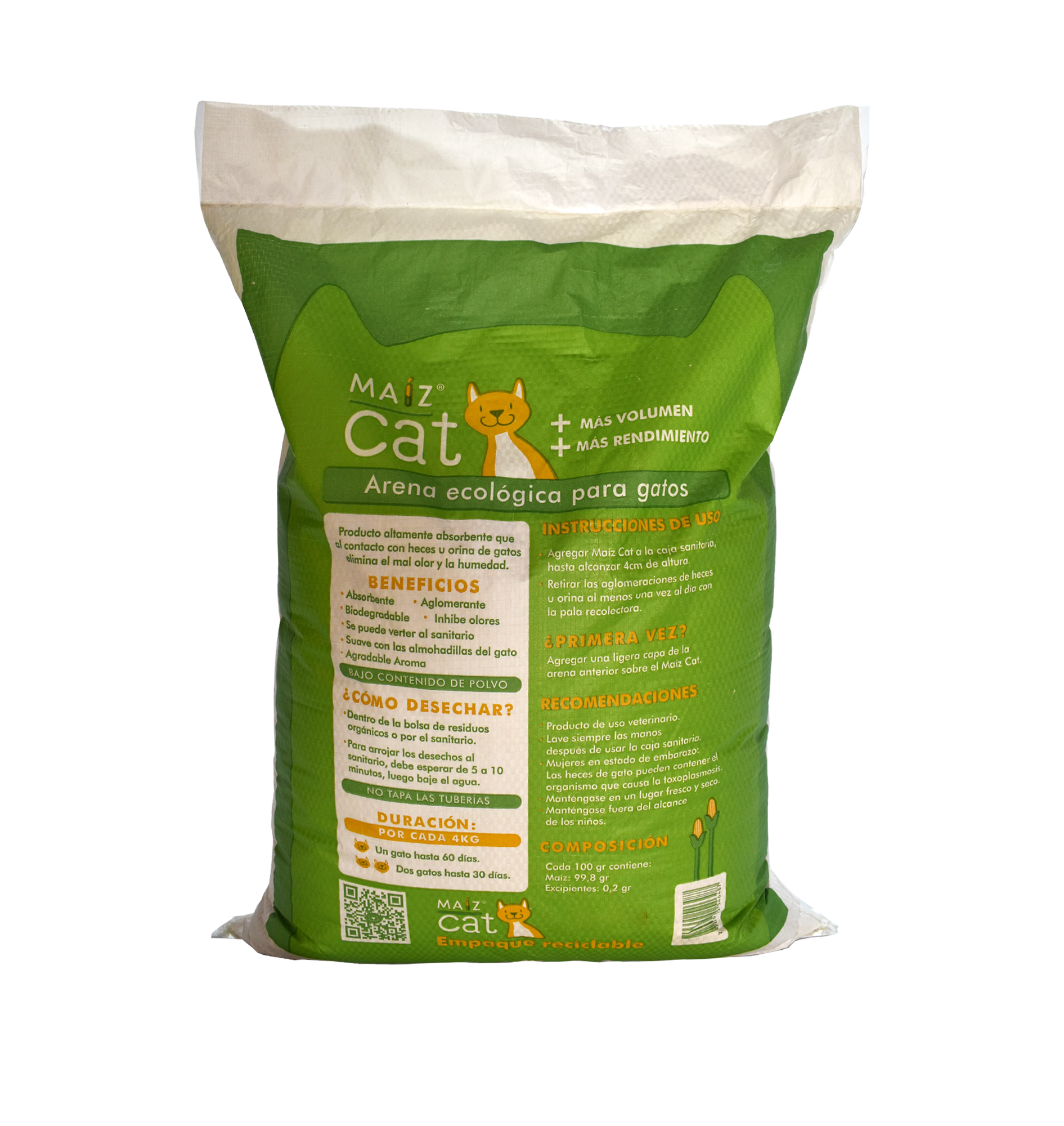 La Arena Ma铆zcat Ecol贸gica Para Gatos es una arena biodegradable hecha a base de ma铆z, dise帽ada para ofrecer una soluci贸n ecol贸gica y eficiente para la higiene de tu gato. A diferencia de las arenas tradicionales, esta arena es amigable con el medio ambiente y est谩 libre de productos qu铆micos nocivos.